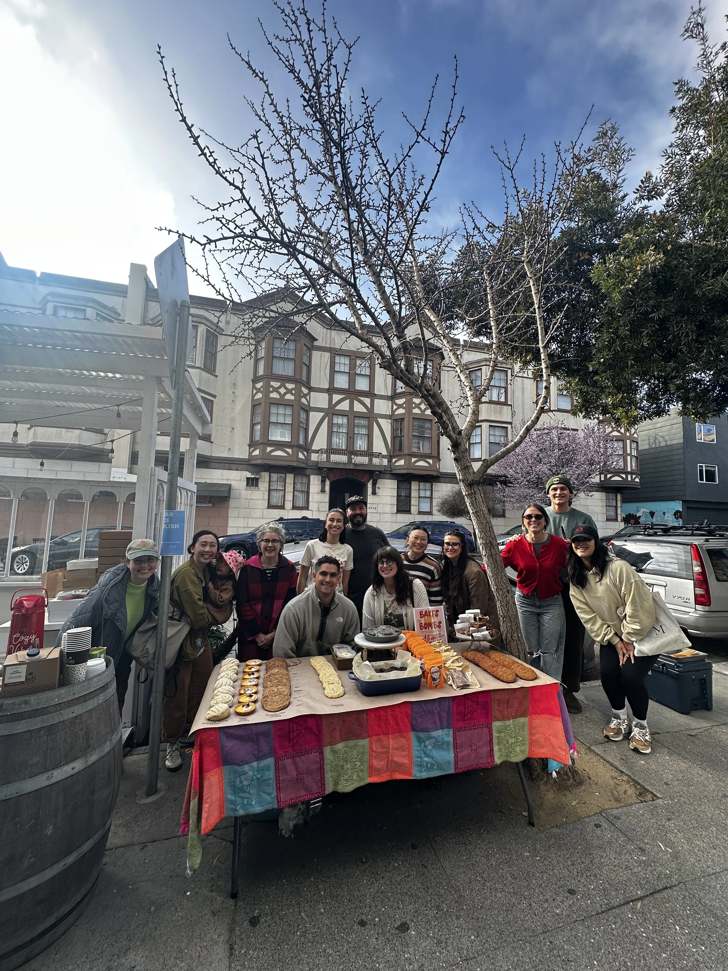 Volunteers at our latest sale in February!Bakes Not Bombs is a community led bake sale initiative to raise funds for various domestic and international social justice issues. The idea started when Julianne felt frustrated and helpless with the happenings in the world, so she decided to fuse her love for baking, community, and activism. Each month, Bakes Not Bombs collects baked goods from both home and professional bakers to be sold at the monthly sales located on the streets of San Francisco.